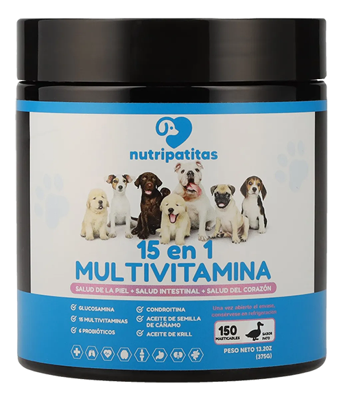 En NutriPatitas, entendemos que tu perro es más que una mascota; es tu confidente, tu compañero de aventuras y un miembro querido de tu familia. Por eso hemos creado un multivitamina 15 en 1 que cuida cada aspecto de su salud, para que siga llenando tus días de alegría y amor incondicional.
